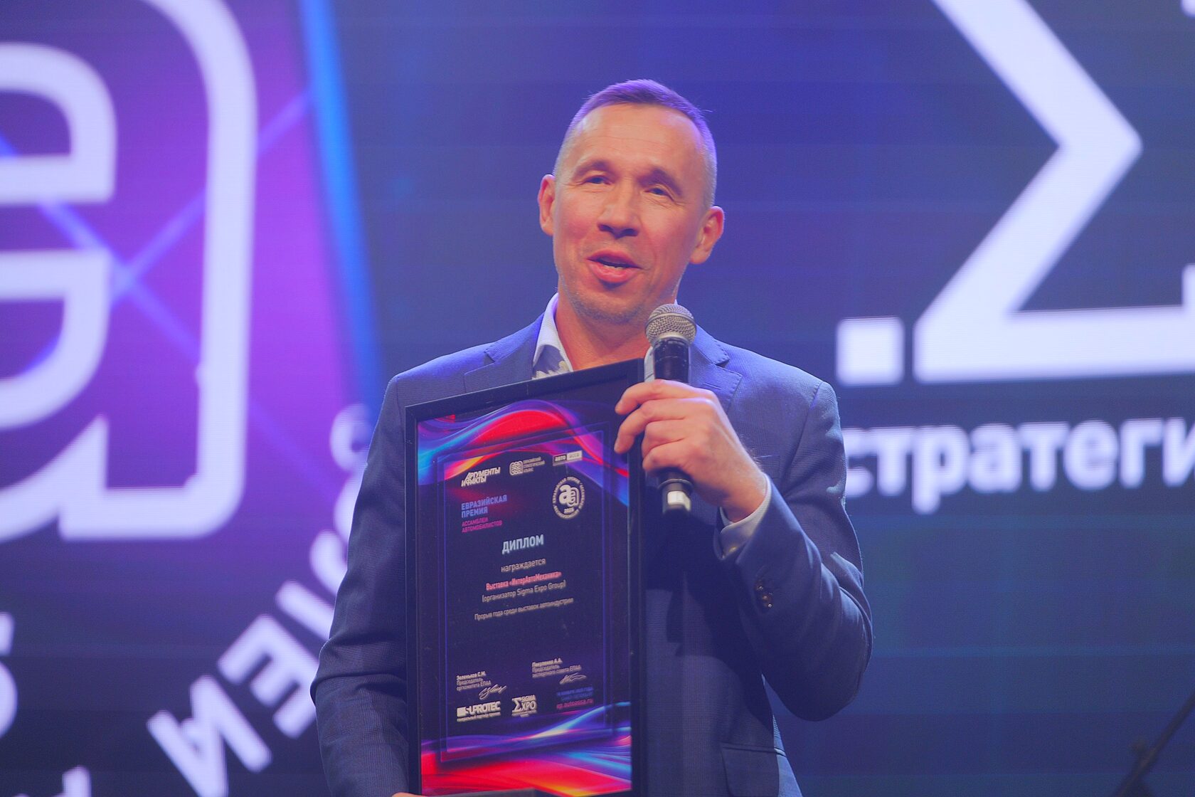 🏆 В номинации «Прорыв года» (Выставки автомобильной индустрии) победителем стала ИнтерАвтоМеханика. Высокую награду вручил вице-президент ООО «ЭкспоФорум – Интернэшнл» Сергей Павлович Алексеев, отметив: «Молодцы, знамя держите».