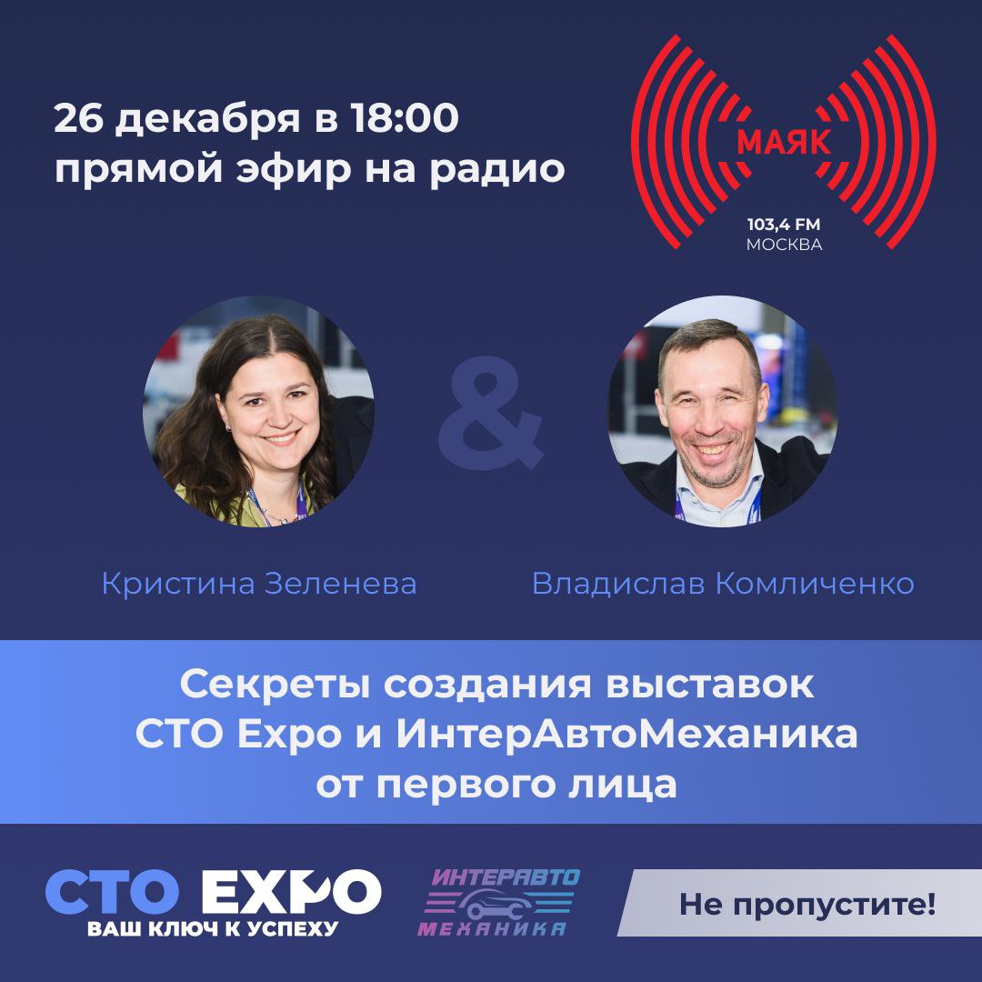Сегодня 26 декабря в прямом эфире радио «Маяк» прошла яркая и содержательная беседа о будущем рынка обслуживания автомобилей и техники и роли выставок как инструмента развития. Ведущие Игорь Ружейников и Фёдор Буцко поговорили со спикерами Sigma Expo Group Владиславом Комличенко и Кристиной Зеленевой, а также с генеральным директором «Супротек» Сергеем Зеленьковым.