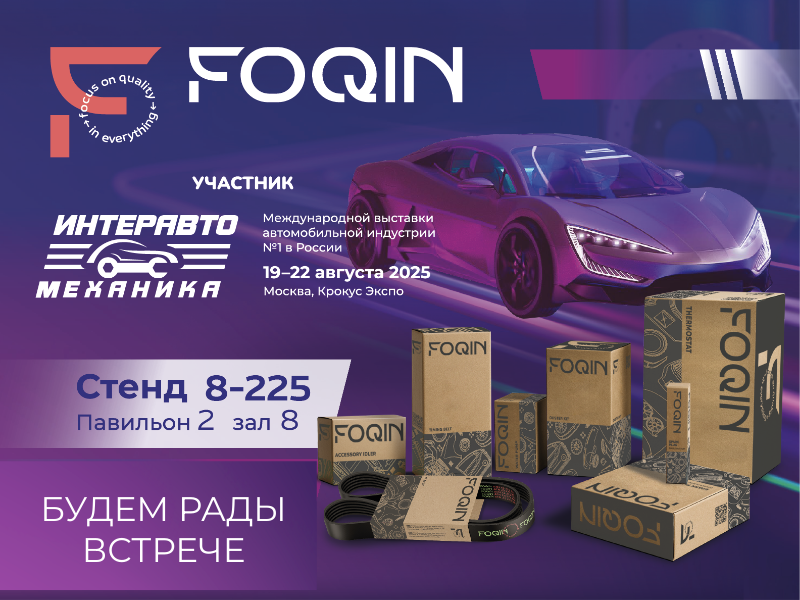 С 19 по 22 августа 2025 года в Москве на выставке ИнтерАвтоМеханика состоится премьера российского бренда FOQIN. Это первый публичный показ линейки автокомпонентов, разработанных и произведенных командой с 20-летним опытом в работе с оригинальными запчастями.